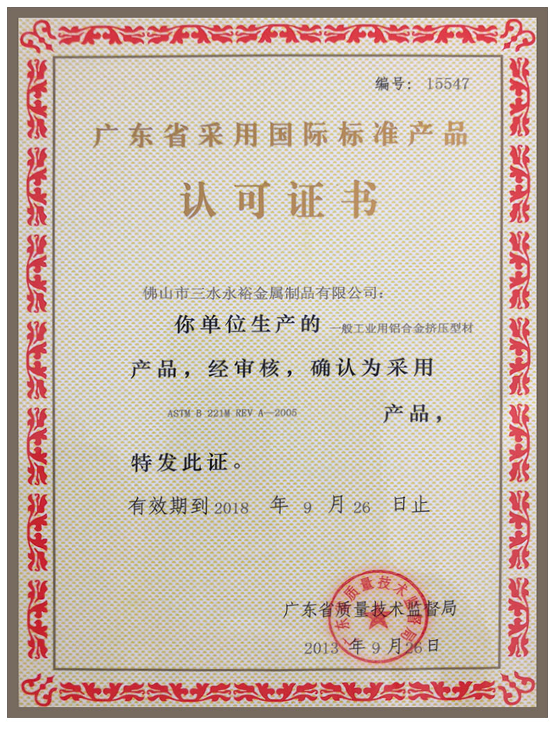國標標準產品認可證書