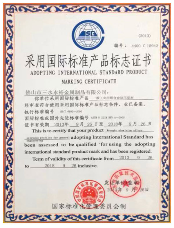 國標標準產品標志證書