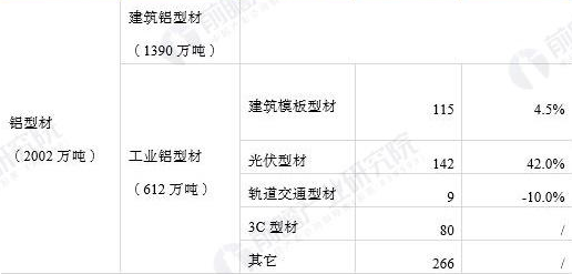鋁型材細(xì)分種類產(chǎn)量如下