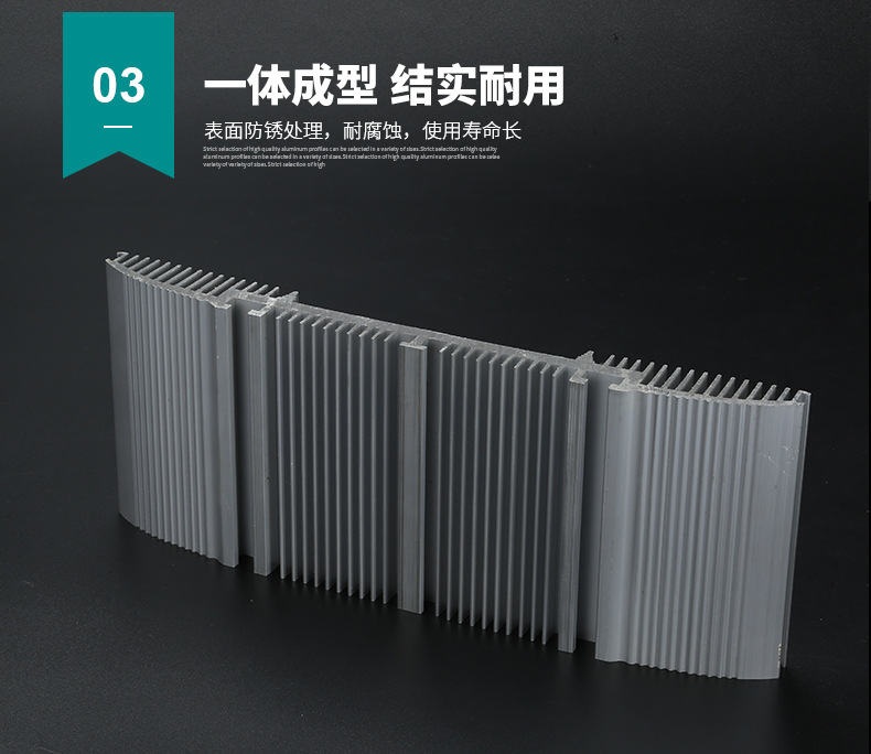 4、LED燈散熱器鋁型材具有耐腐蝕、使用壽命長。鋁合金材料表面可生成一層厚的堅實的氧化膜,可在pH≤9的采暖水質(zhì)中或汽車水箱中長期使用,而經(jīng)過特殊的表面處理的鋁質(zhì)散熱器可在pH≤12的各種材質(zhì)中長期使用。