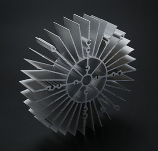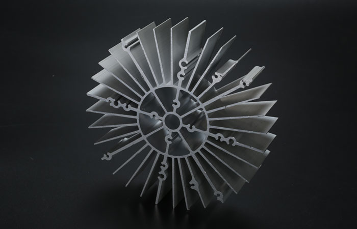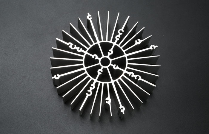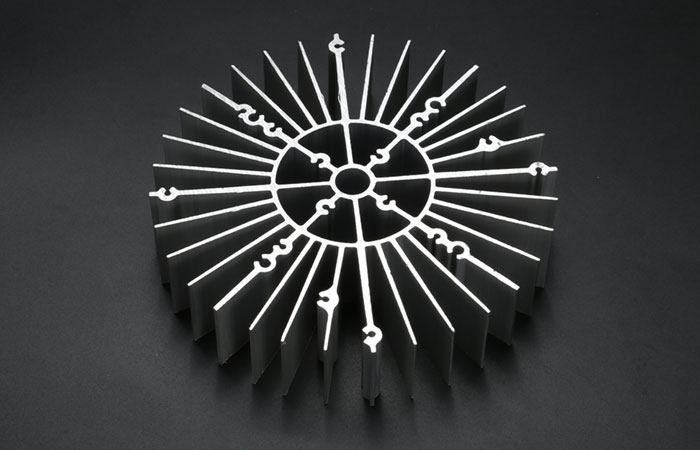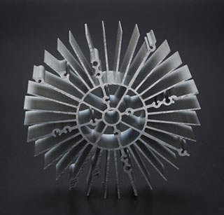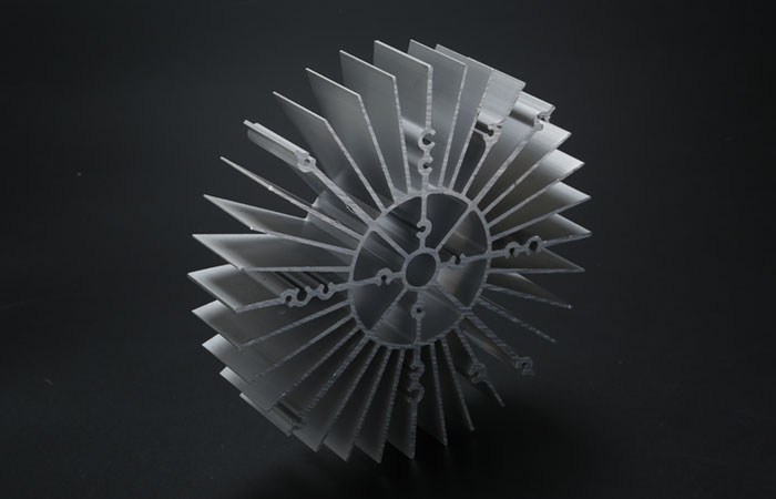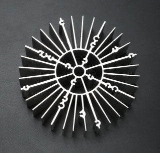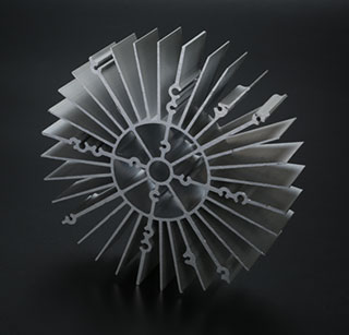 2、鋁型材加工出來的LED散熱器(通常為太陽花形狀居多),材料一般是選用A6063鋁合金材質(zhì)。